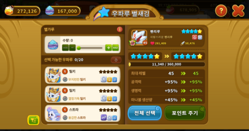 • 星刻印は、該当ウパルの昇級段階と同じ段階まで成長させることができます。星刻印の数による獲得ポイント数はページ下部をご確認ください。